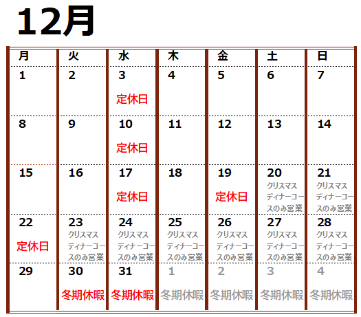 年内の営業を終了いたしました。